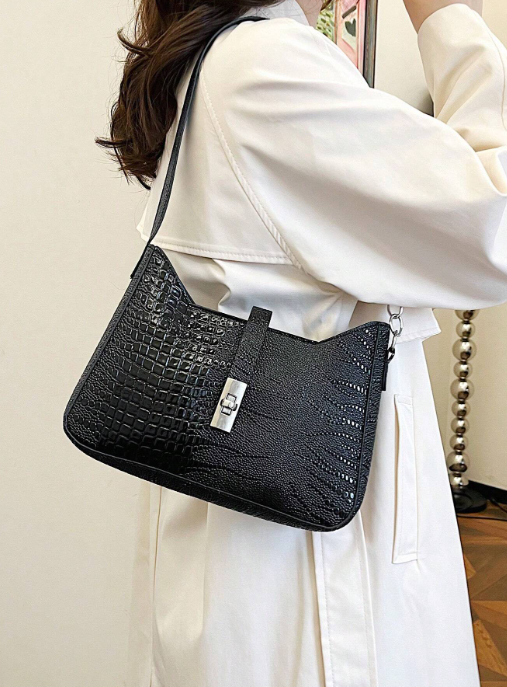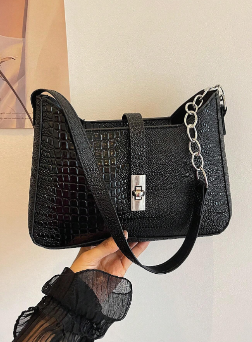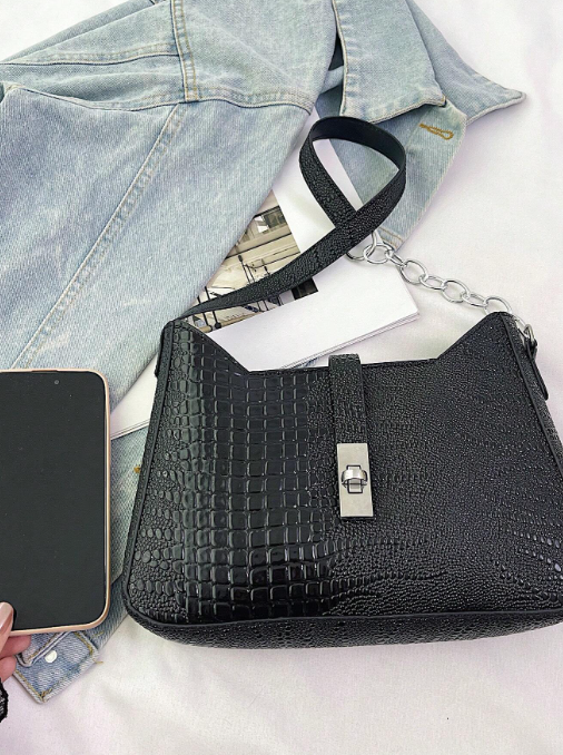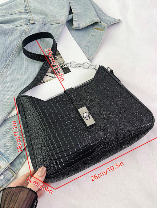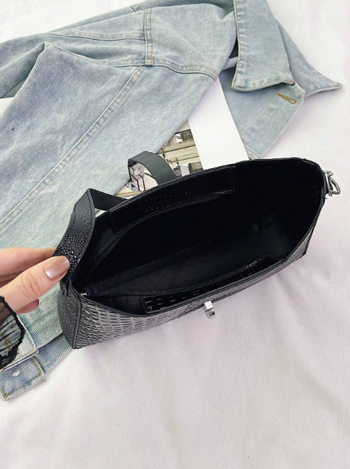 Shein - Fashionable Luxury Solid Color Crocodile Embossed Shoulder Bag