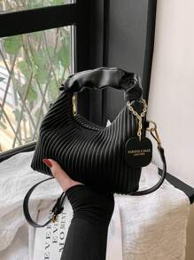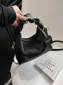 Shein- Fashionable Minimalist Wrinkled Woven PU Zipper Handbag