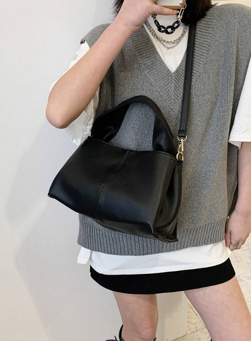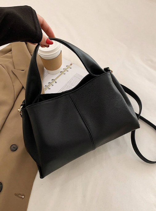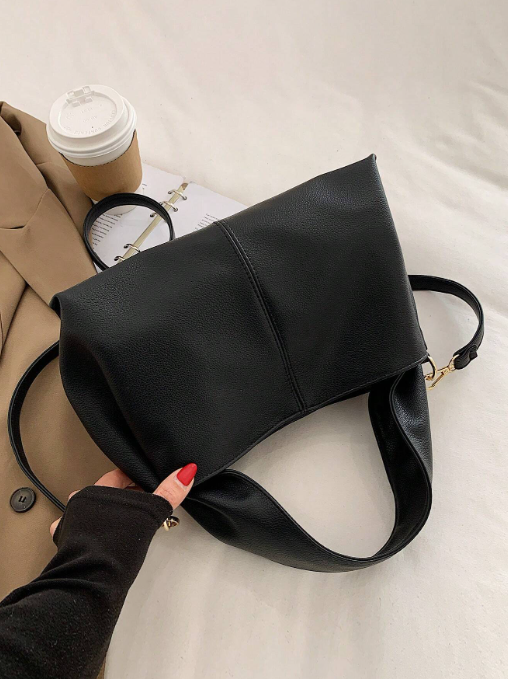 Shein - Fashionable Solid Color Litchi Grain Minimalistic PU Leather Square Tote Bag
