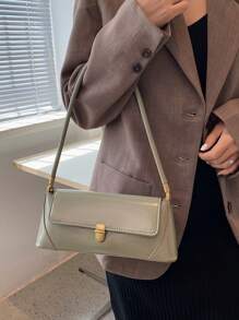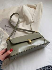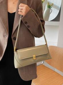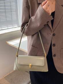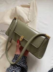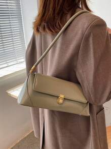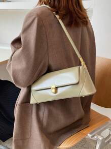 Shein - Fashionable Solid Color Retro Underarm French Stick Handbag