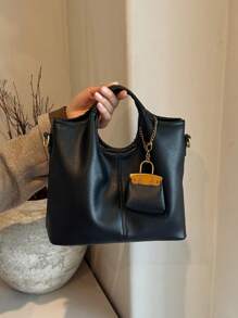 Shein - Fashionable Women Handbag Set, Solid Color Stylish & Trendy PU Tote Bag