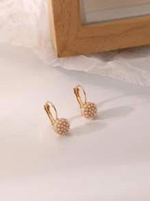Shein - Faux Pearl Decor Hoop Earrings
