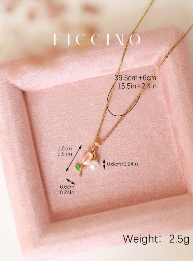 Shein - FICCINO Cute Pink Tulip Plated Faux Pearl Pendant Necklace