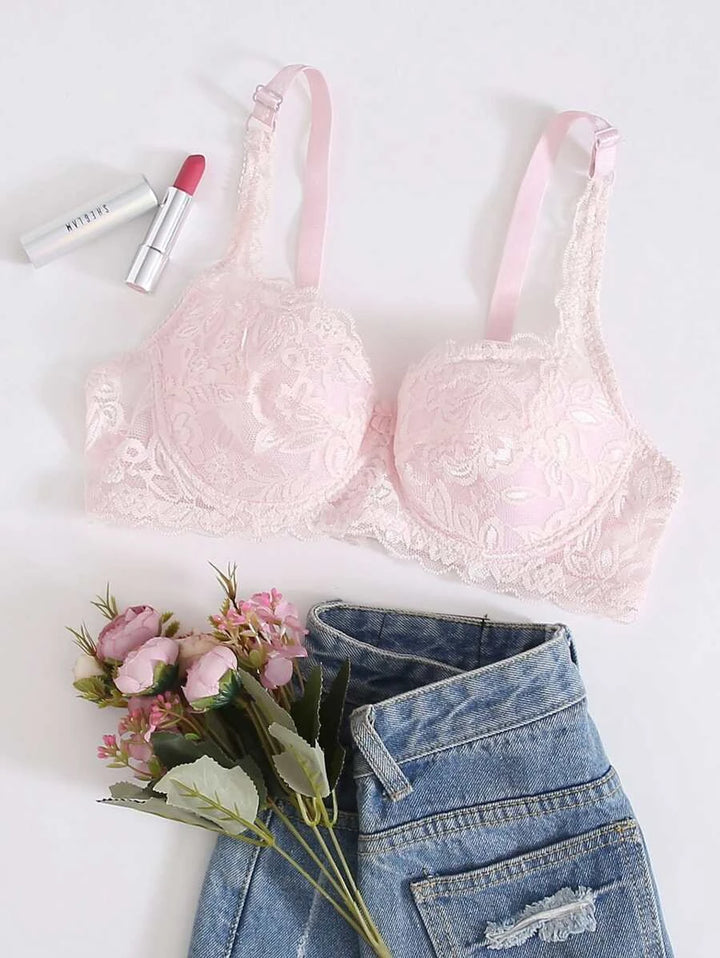 Shein - Floral lace metal ring bra