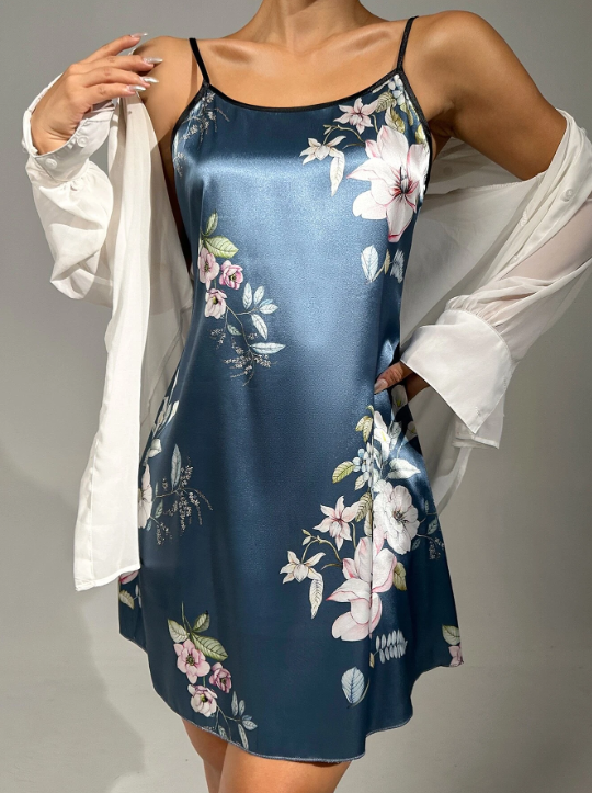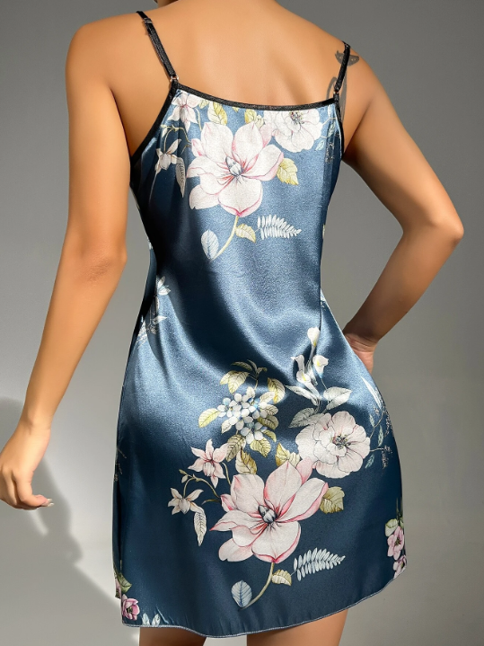 Shein - Floral Print Satin Cami Nightdress