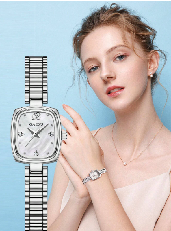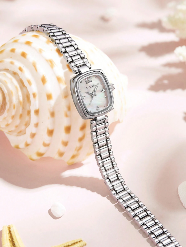 Shein - GAIDU 1pc Women's Fashion Minimalist Luxury Small Square Dial Stainless Steel Band