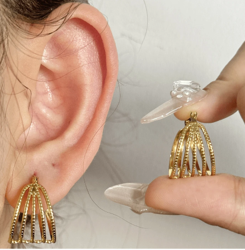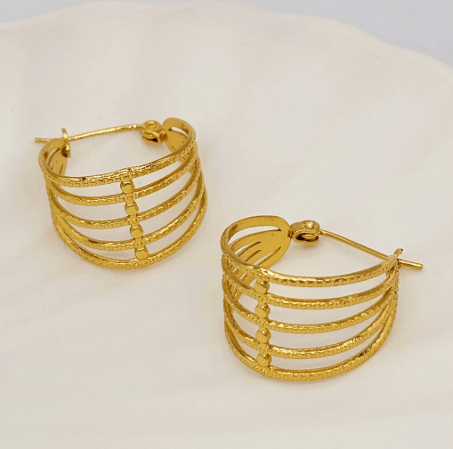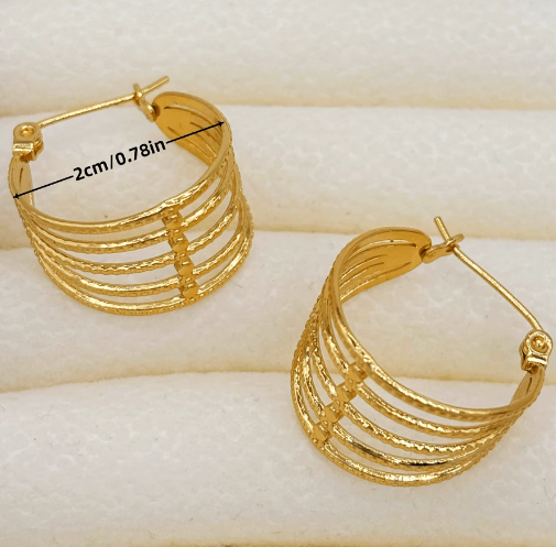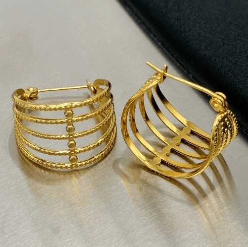 Shein - Geometric C-Shaped Retro Multi-Layer Hollow Earrings