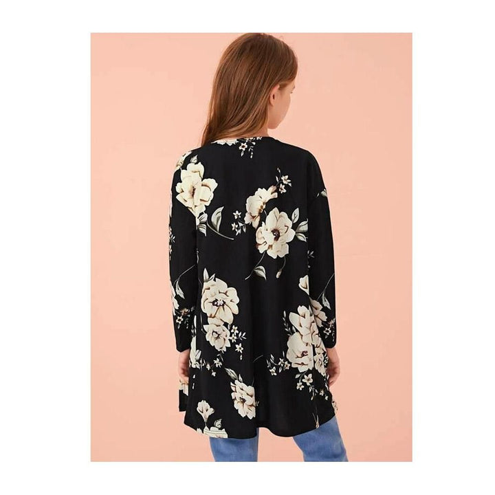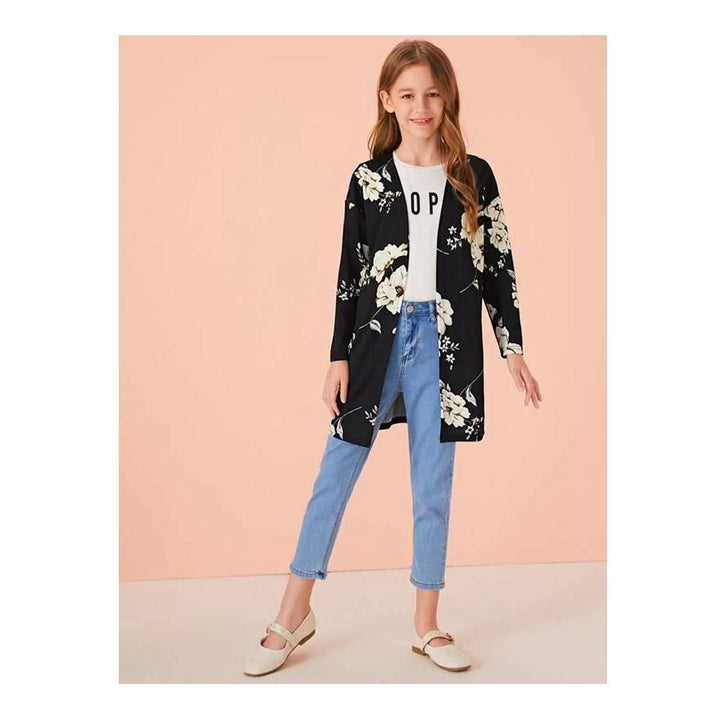 Shein- Girls Open Front Drop Shoulder Floral Print Coat