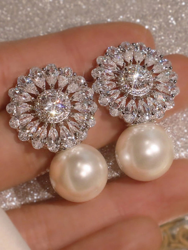 Shein Glamorous cubic zirconia stud earrings decorated with artificial pearls for everyday use, one pair for women
