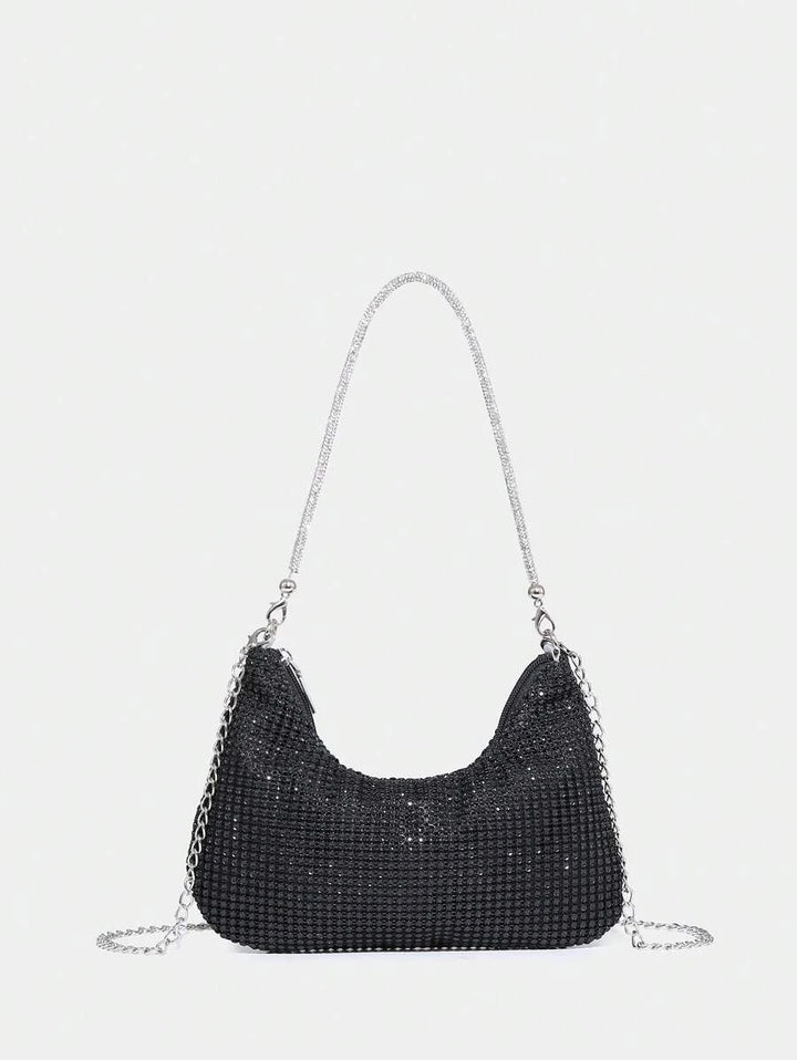 Shein - Glamorous Glitter Bling, Sequin, Luxury, Shiny Black Hobo Bag Rhinestone Decor Chain For Party Evening Bag