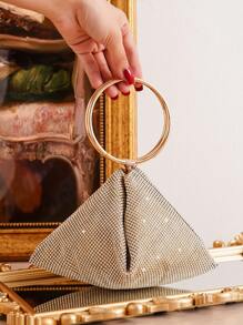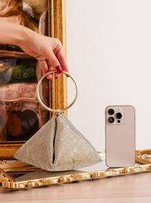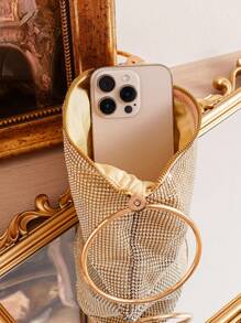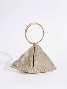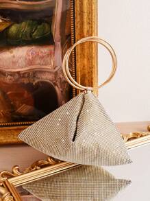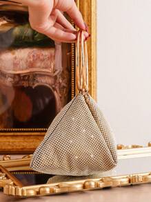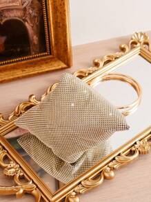 Shein - Golden Evening Bag With Shiny Rhinestone Decoration, Clutch Bag