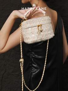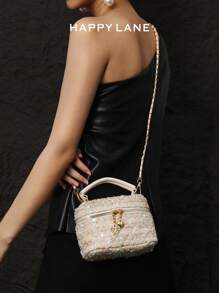 Shein - HAPPY LANE Women's Tweed Chain Shoulder Bag
