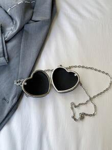 Shein - Heart-Shaped Mini Chain Shoulder Bag