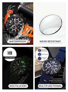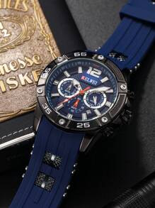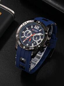 Shein - KEIWEI Sports Casual Quartz Chronograph Silicone Strap Waterproof