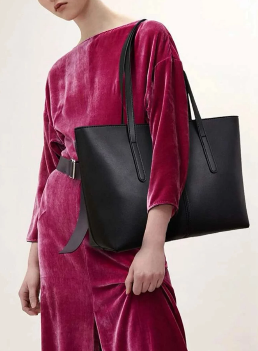 Shein - Large Tote Bag Shoulder Bag Women PU Leather Wallet With Top Handle