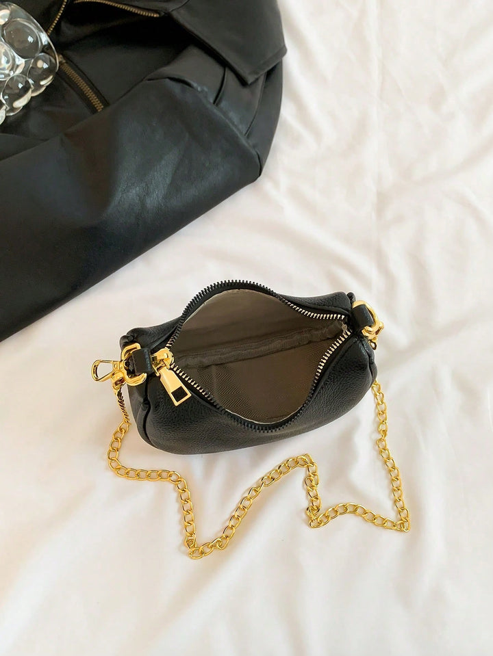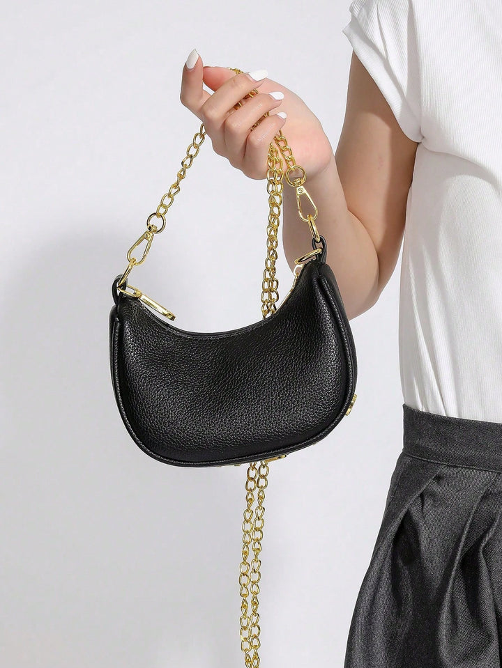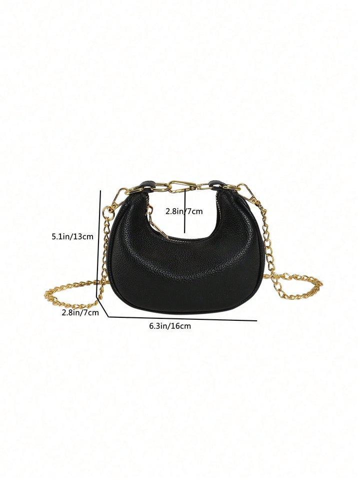 Shein - Leopard Print Crescent Moon Decor Chain Handle Mini Letter Charm Shoulder Crossbody Bag,