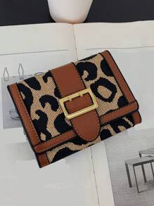 Shein - Leopard Print PU Fabric Tri-Fold Wallet Card Holder Coin Purse