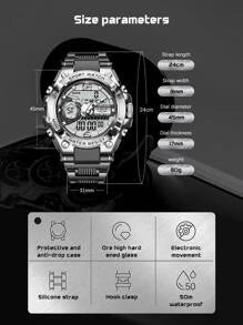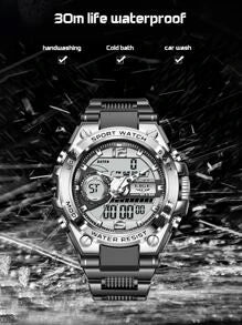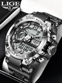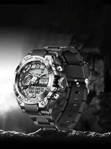 Shein - LIGE 1pc Black Silicone Strap Casual Date Calendars 24 Hour Round Dial Digital Watch