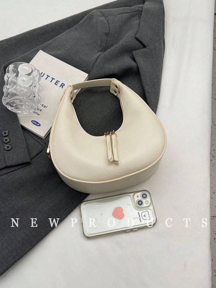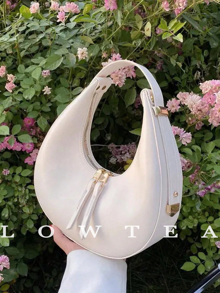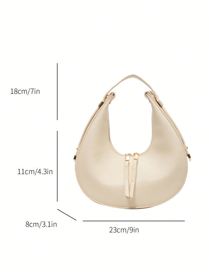 Shein - low tea Women's Fashionable Elegant Solid Color Zipper Crescent Handbag
