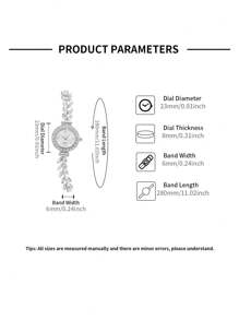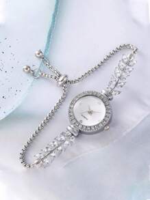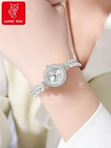 Shein - LUCKYFOX Quartz Watch For Women, Elegant And Fashionable With A Green Leaf Fine Strap, Studded With Diamonds, Round Dial, Pull Adjustment Chain, Suitable For Daily Wear, Gift For Couples And Valentine's Day Gifts