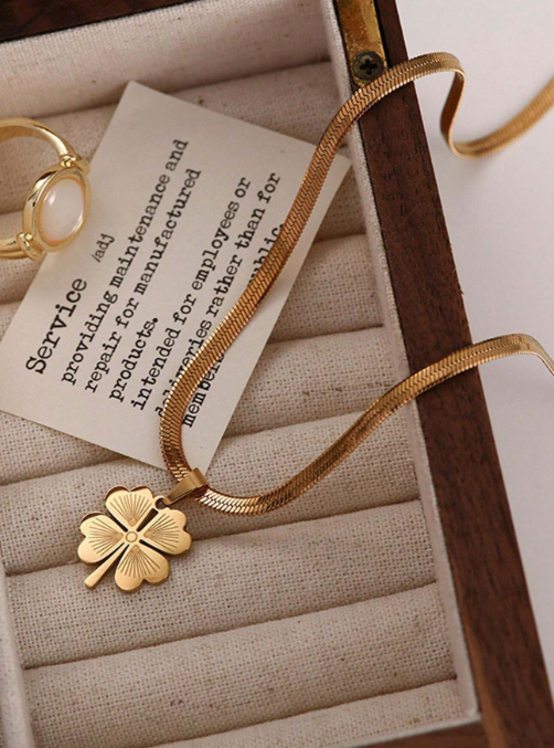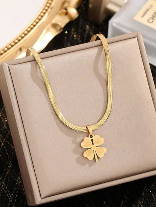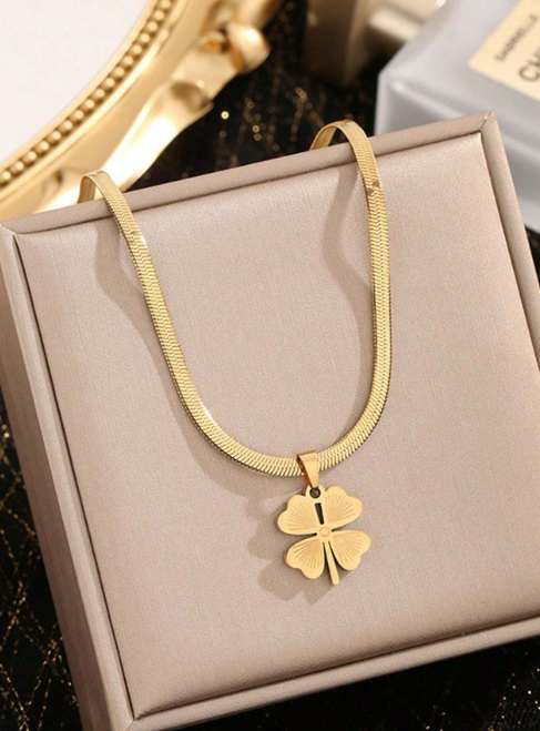 Shein - Luxury 1pc Clover Jewelry Set For Women - 18K Golden Plated Stainless Steel Necklace And Earrings Set