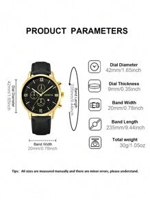 Shein - Men Watch 1pc Men's Black Pu Strap Gold Dial Calendar Fashion Quartz Watch Watch For Men Father's Day Gifts