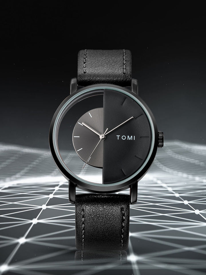 Shein - Men's Simple And Fashionable Semi-Transparent Dial Half-Face Leather Belt Watch