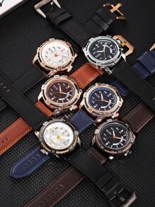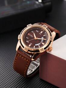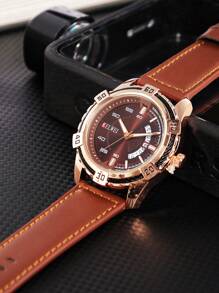 Shein - Men's Watch Quartz Movement New Leather Belt Luminous Waterproof Brown