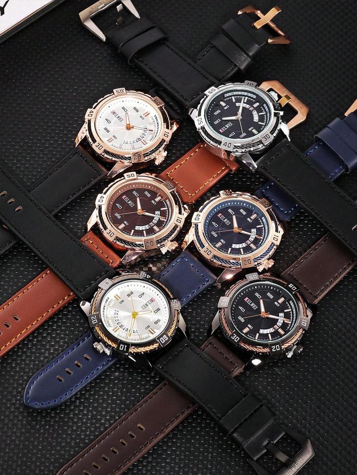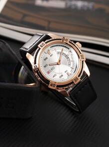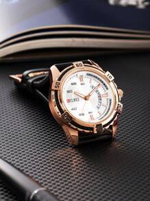 Shein - Men's Watch Quartz Movement New Leather Belt Luminous Waterproof Silver