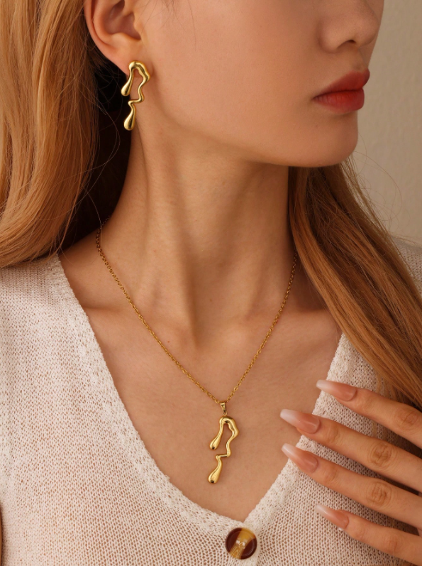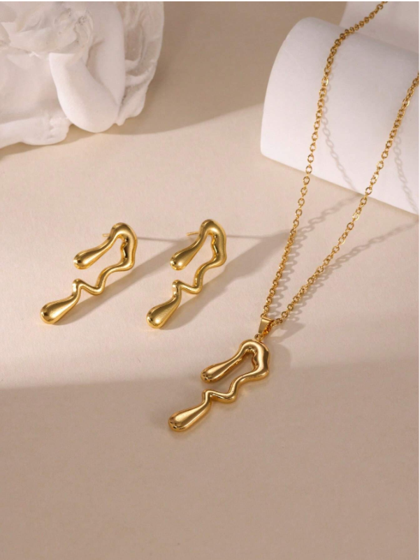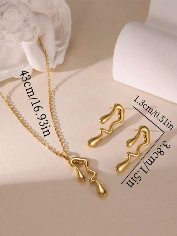 Shein - MESTILO 3pcs Minimalist Twisted Line Stainless Steel Necklace & Earring Jewelry Set