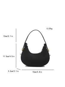Shein - Mini Cute Solid Black Handbag For Women, Fashionable & Versatile Halfmoon Shoulder Bag