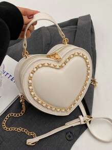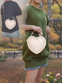 Shein - Mini Novelty Bag Heart Shaped With Zipper PU
