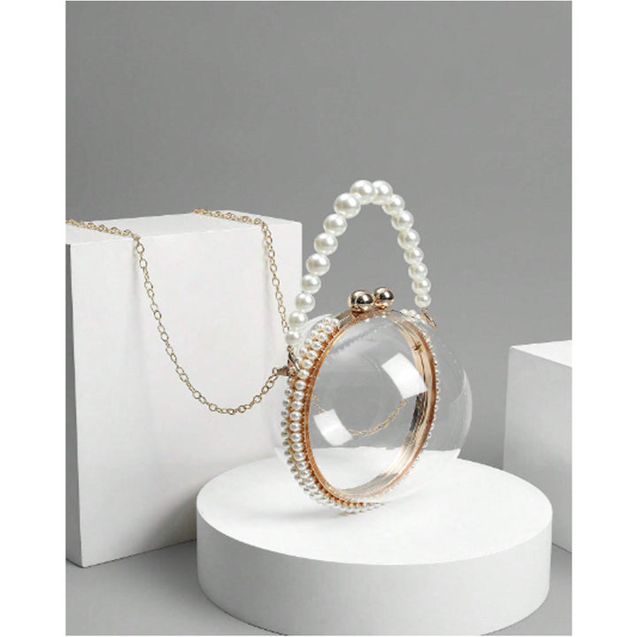 Shein - Mini round bag decorated with faux pearls, elegant transparent chain touch closure