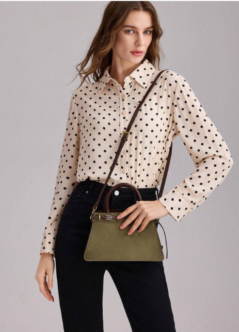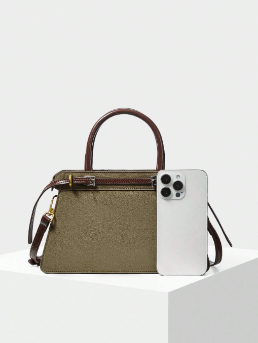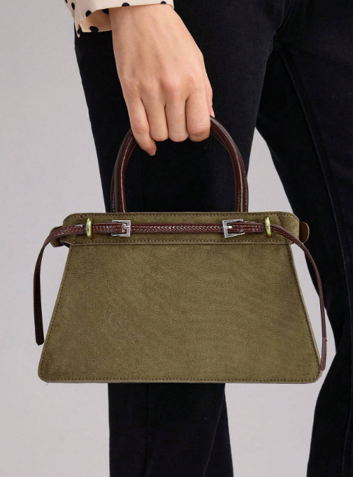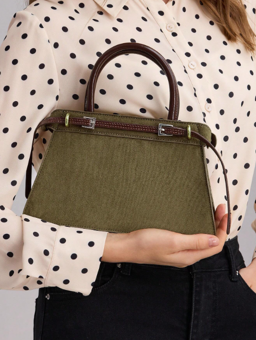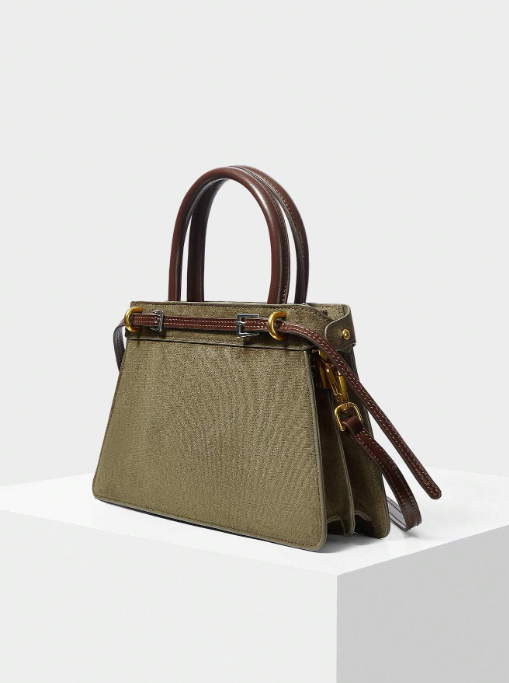Shein - Motf Premium Color Block Buckle Top Handle Bag