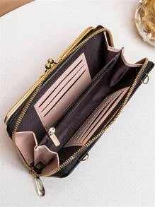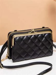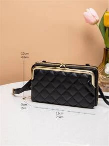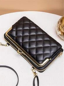 Shein - Quilted Kiss Lock Phone Wallet Purse Shoulder Bag Phone Case Crossbody Bag Phone Bag Clutch