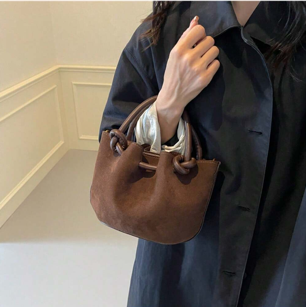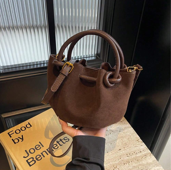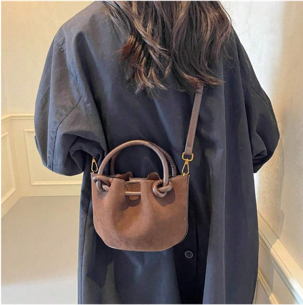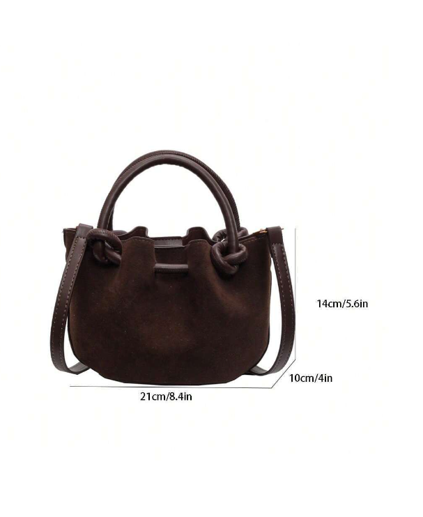 Shein - Retro Suede Matte Small Bag, Women's High-End Handbag, Bucket Bag, Leather Shoulder Crossbody Bag