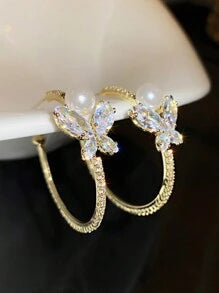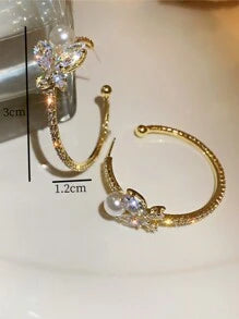 Shein - Rhinestone Butterfly Decor Hoop Earrings
