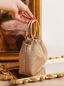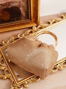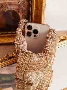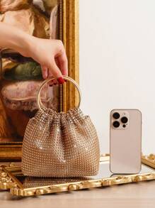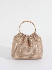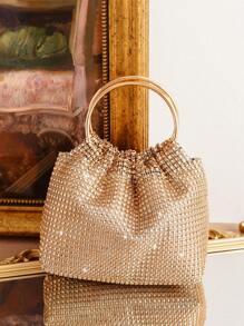 Shein - Rhinestone Decorative Handbag With Double Ring Handle, Party Clutch