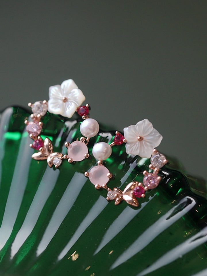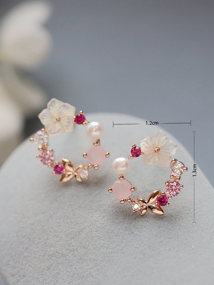 Shein - Rhinestone & Flower Decor Stud Earrings