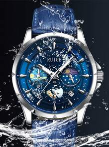 Shein - RUIG RUIGE Men's Quartz Watch With Moon Phase, Ocean Casual Style