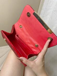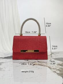 Shein - Shiny Elegant Square Handbag With Metal Decor Lid