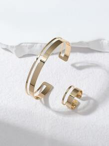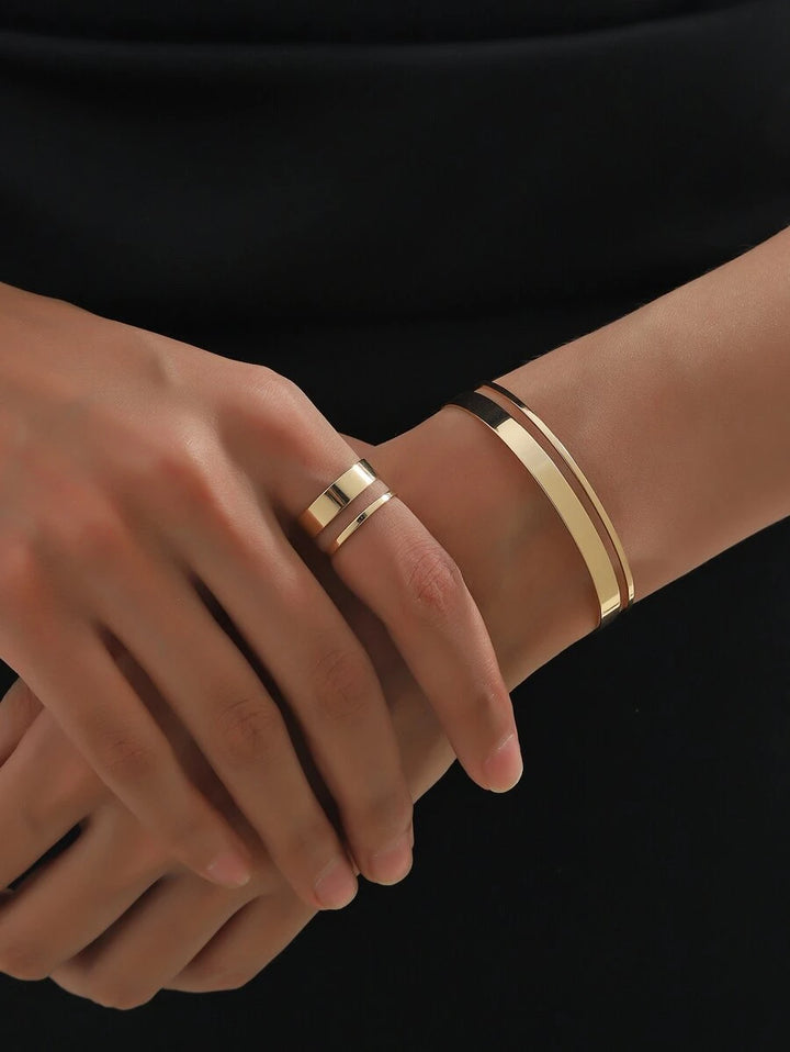 Shein Simple copper geometric waves bracelet and ring set 2 pieces for women