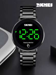 Shein - SKMEI 1pc Black Stainless Steel Strap Fashionable Water Resistant Round Dial Digital Watch, Fo