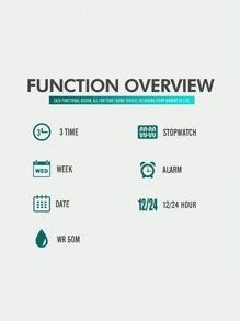 Features: Date, Chronograph, Calendars, 24 Hour, Water Resistant, Alarm Clock