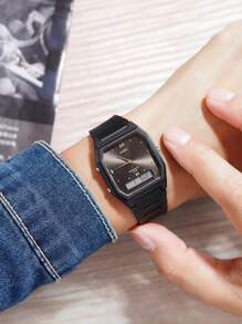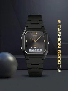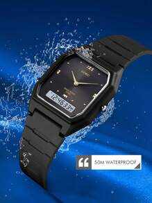 Shein - Skmei 1pc Men's Ultra-Thin Dual Display Electronic Watch With Rubber Strap