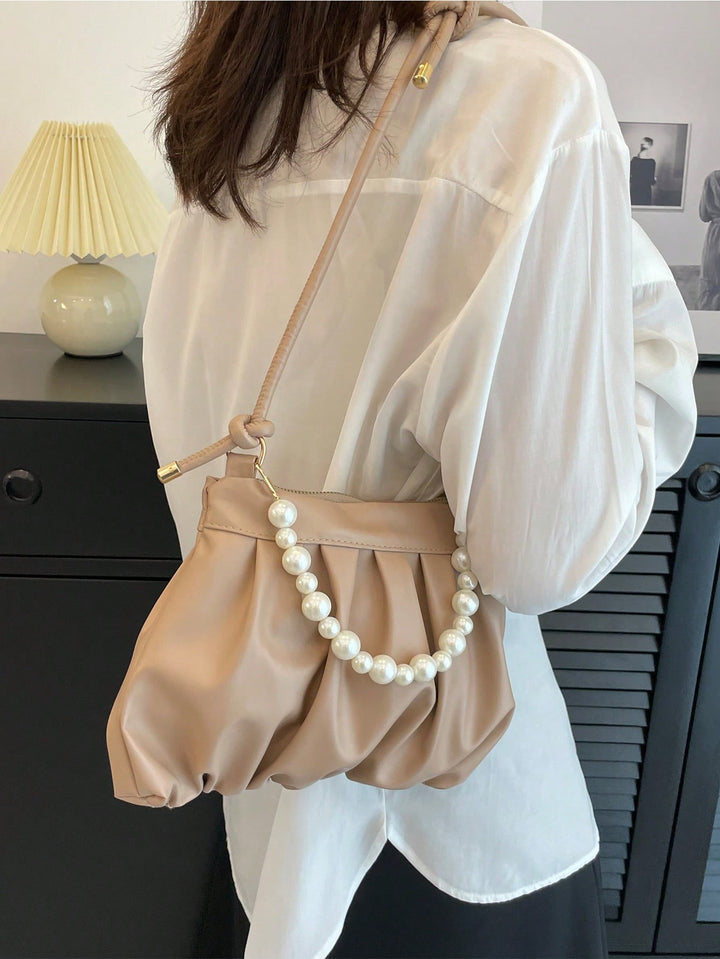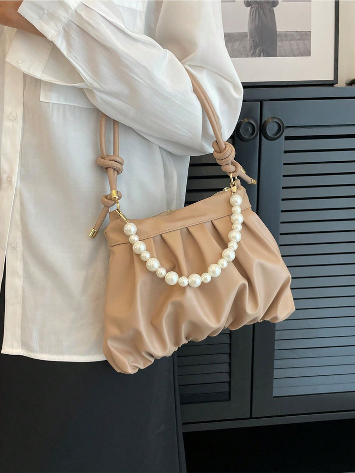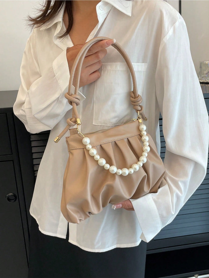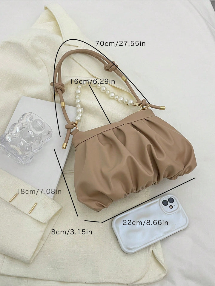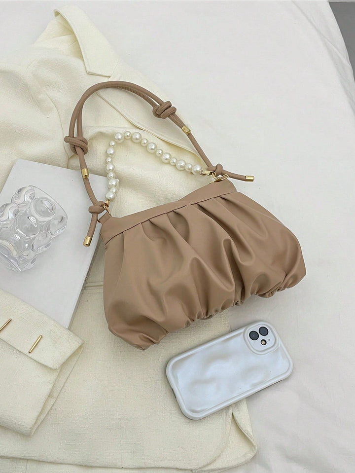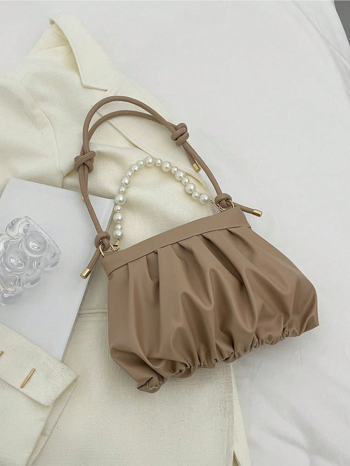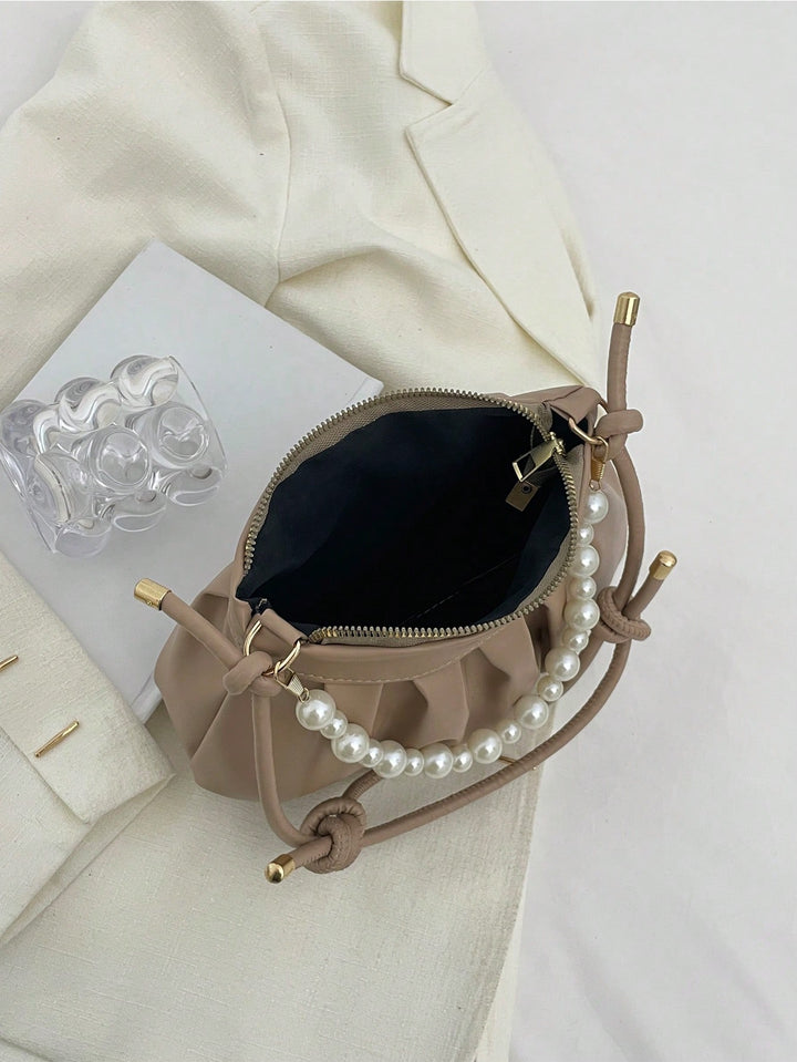 Shein - Small Ruched Bag Solid Color Faux Pearl Decor shoulder Bag