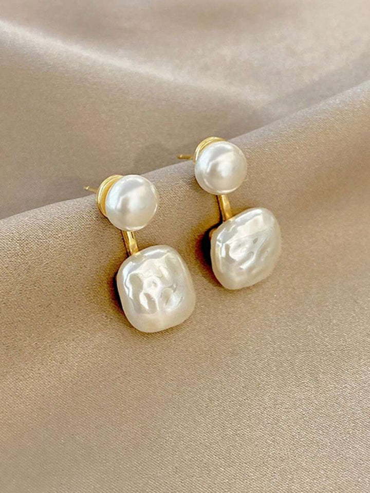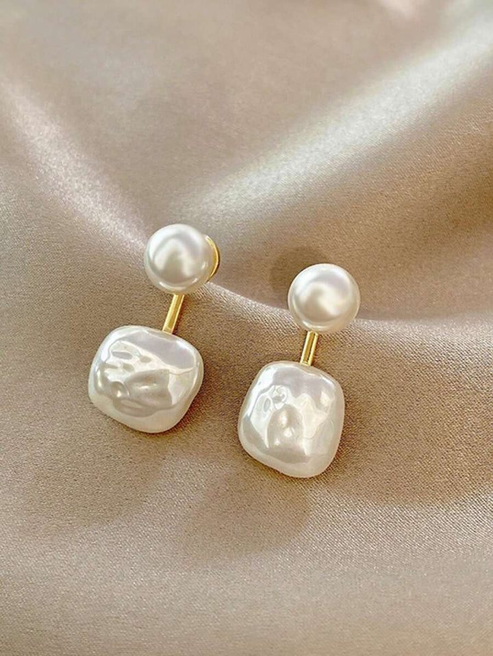 Shein Streamlined Unusual Geometric Square and Faux Pearl Drop Earrings 1 Pair