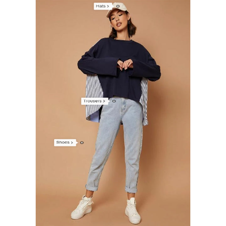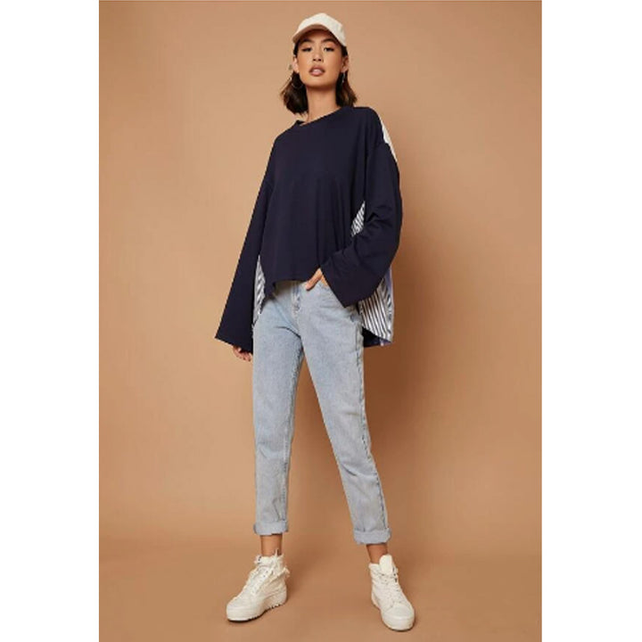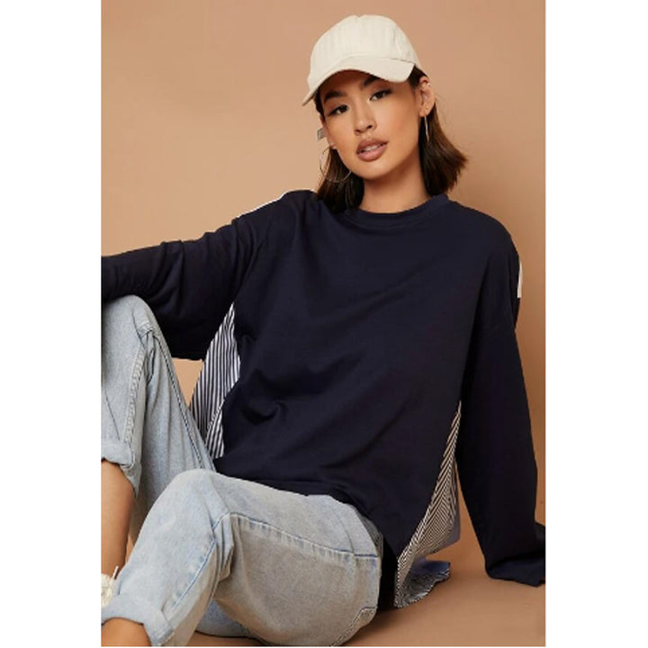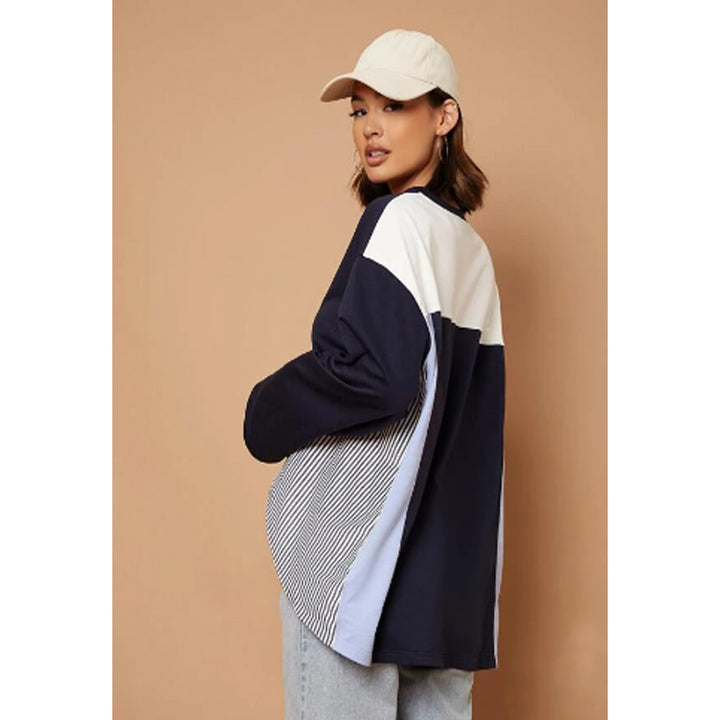 Shein - Striped Print Color Block Drop Shoulder Tee- Multicolor