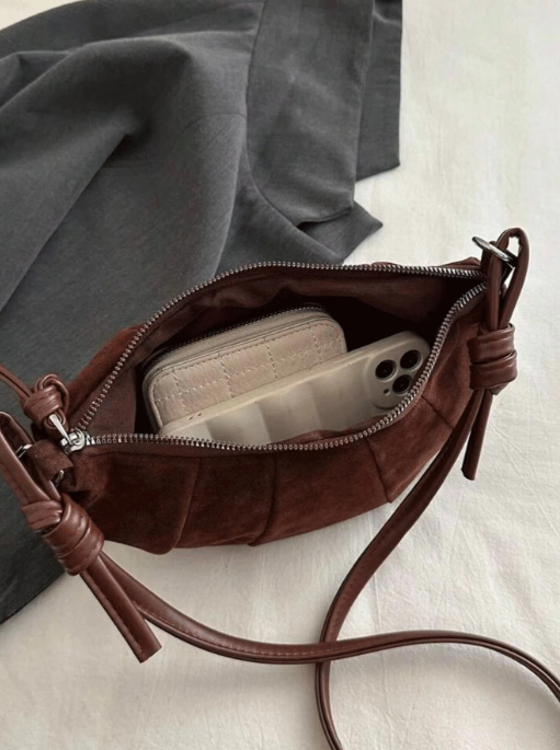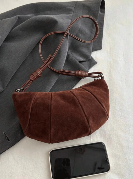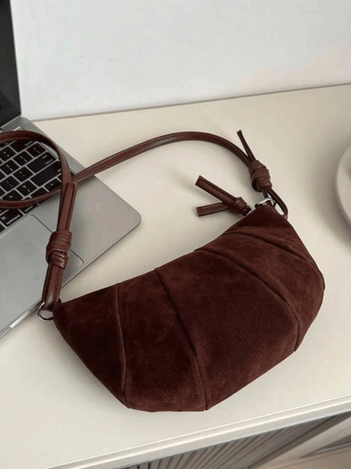 Shein - The New Fashion Classic Joker Solid Color Suede Quilting Design Spice Girl Style Croissant Shoulder Bag