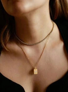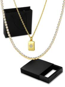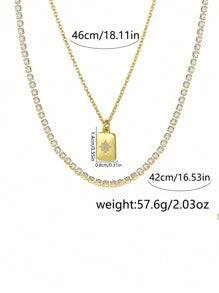 Shein - Tkool 2pcs 18K Gold Plated Classic 8-Pointed Star CZ Layered Pendant Necklace Set
